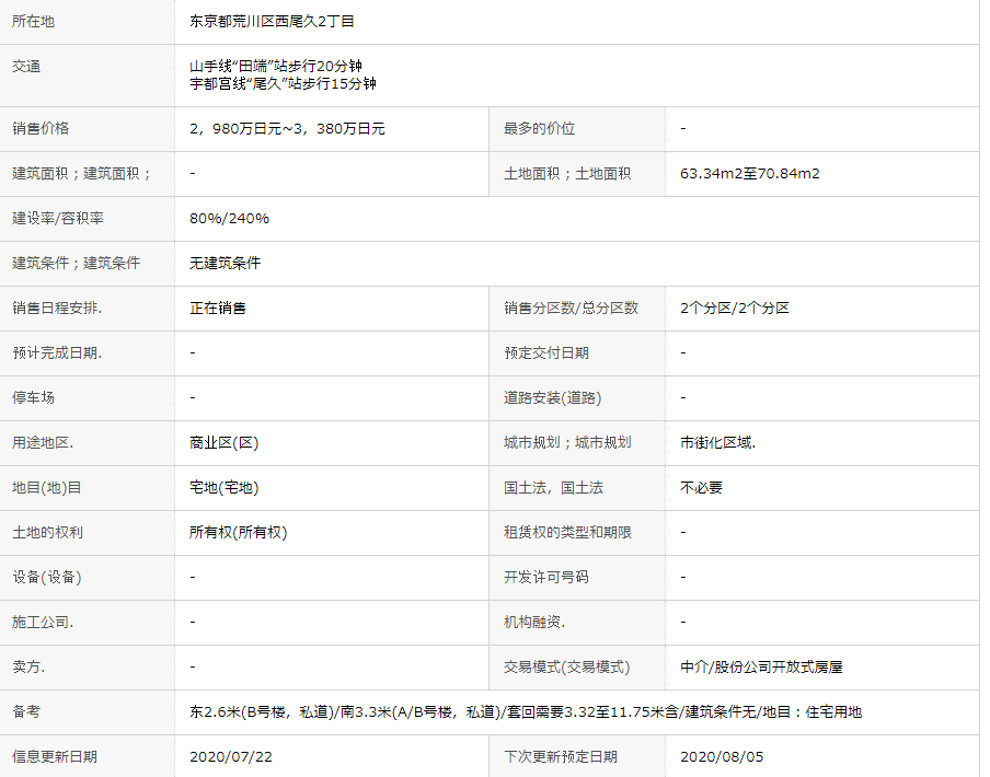 | traffic | 山手线“田端”站步行20分钟 宇都宫线“尾久”站步行15分钟 | ||