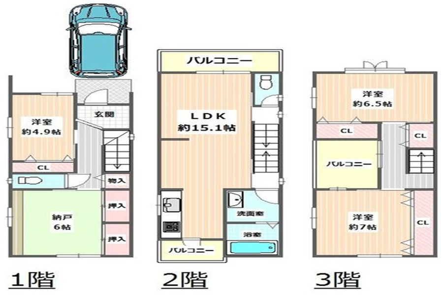 西淀川区歌岛1一户建,2014年建木制三层建筑。大阪市立歌岛小学、超市、公园都在几百米之内。有停车场!室内非常干净。