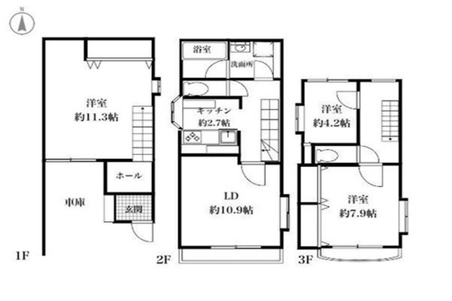 新宿区早稻田鹤卷町一户建,1980年建三层建筑。朝南!阳光良好!全室收纳齐全!有停车位!
